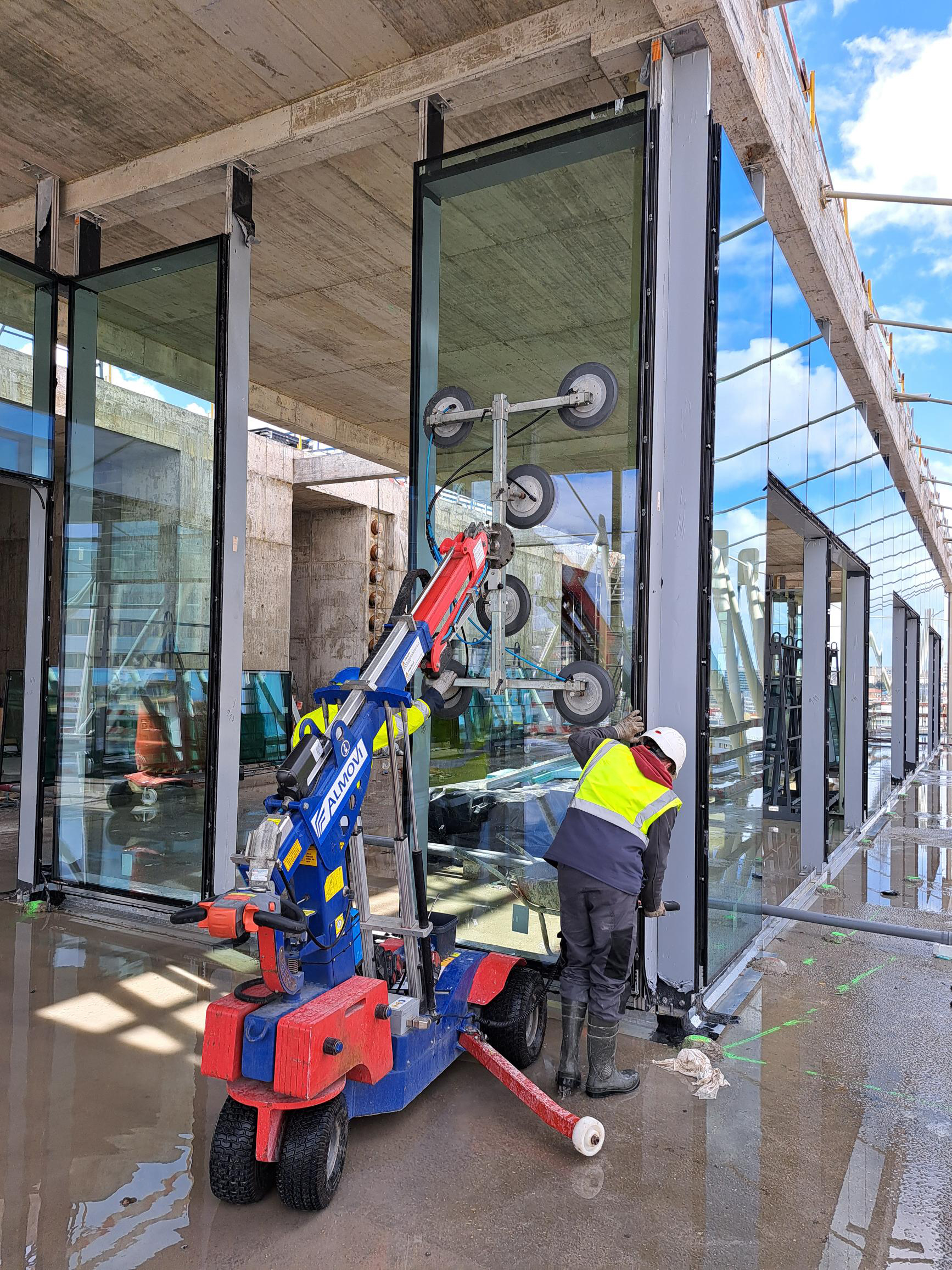 Almovi's robots and suction cups ensure efficient and swift operation in any location.