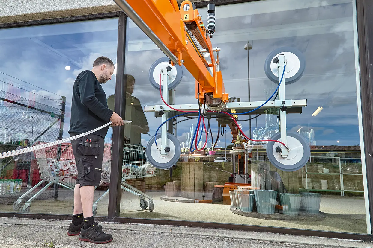 El SL 609 HL es un robot elevador totalmente eléctrico, diseñado para manipular vidrio, mármol, granito y acero con seguridad y precisión. Su tamaño compacto y su gran estabilidad lo convierten en la opción ideal para trabajos exigentes en exteriores.