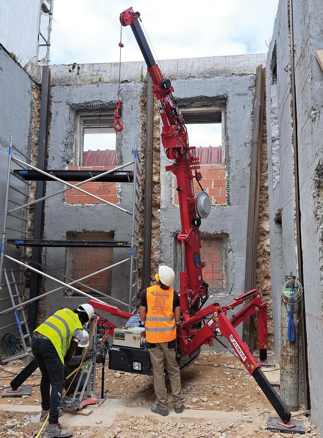 En la demolición controlada de edificios y en trabajos de refuerzo estructural—especialmente en zonas urbanas densas—la seguridad es crítica. En estos escenarios, se utilizaron mini grúas para retirar piedra, bloques de hormigón, vigas y otros elementos de forma controlada, reduciendo riesgos para los trabajadores y para las estructuras vecinas.