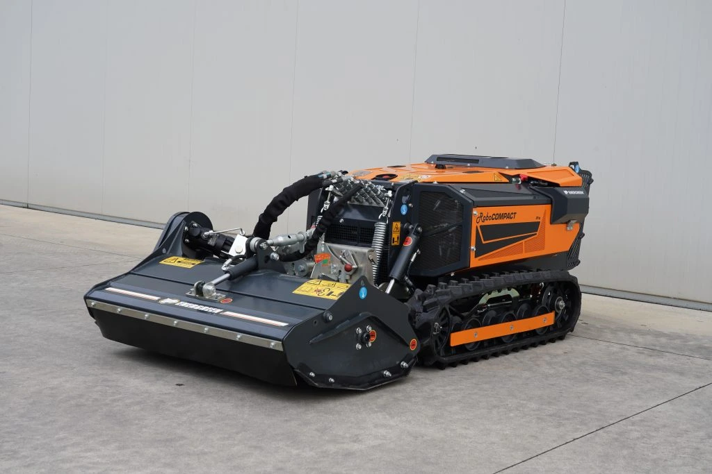 O RoboCOMPACT 25 hp é uma máquina porta-ferramentas radiocontrolada, projetada para trabalhos exigentes em terrenos inclinados até 61°. Equipado com motor Kubota de 25 CV, destaca-se pela estabilidade, tração eficiente e elevada produtividade.